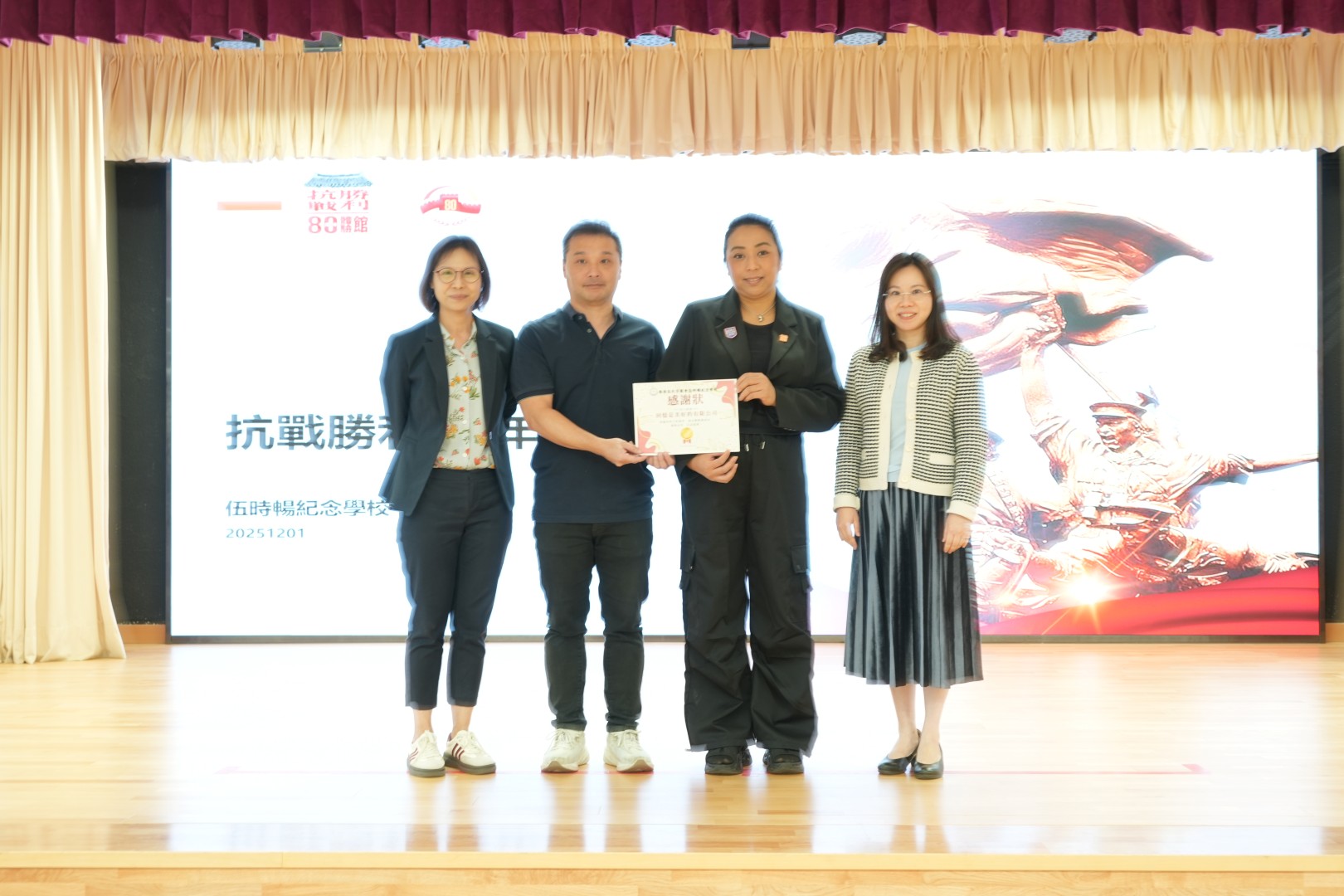 本校舉辦「抗戰勝利80周年」講座,並邀請到製作「抗戰勝利八十周年體驗館」的負責人到校主持講座,讓學生更了解這段中國歷史的資料,培養學生的國民身份認同感。