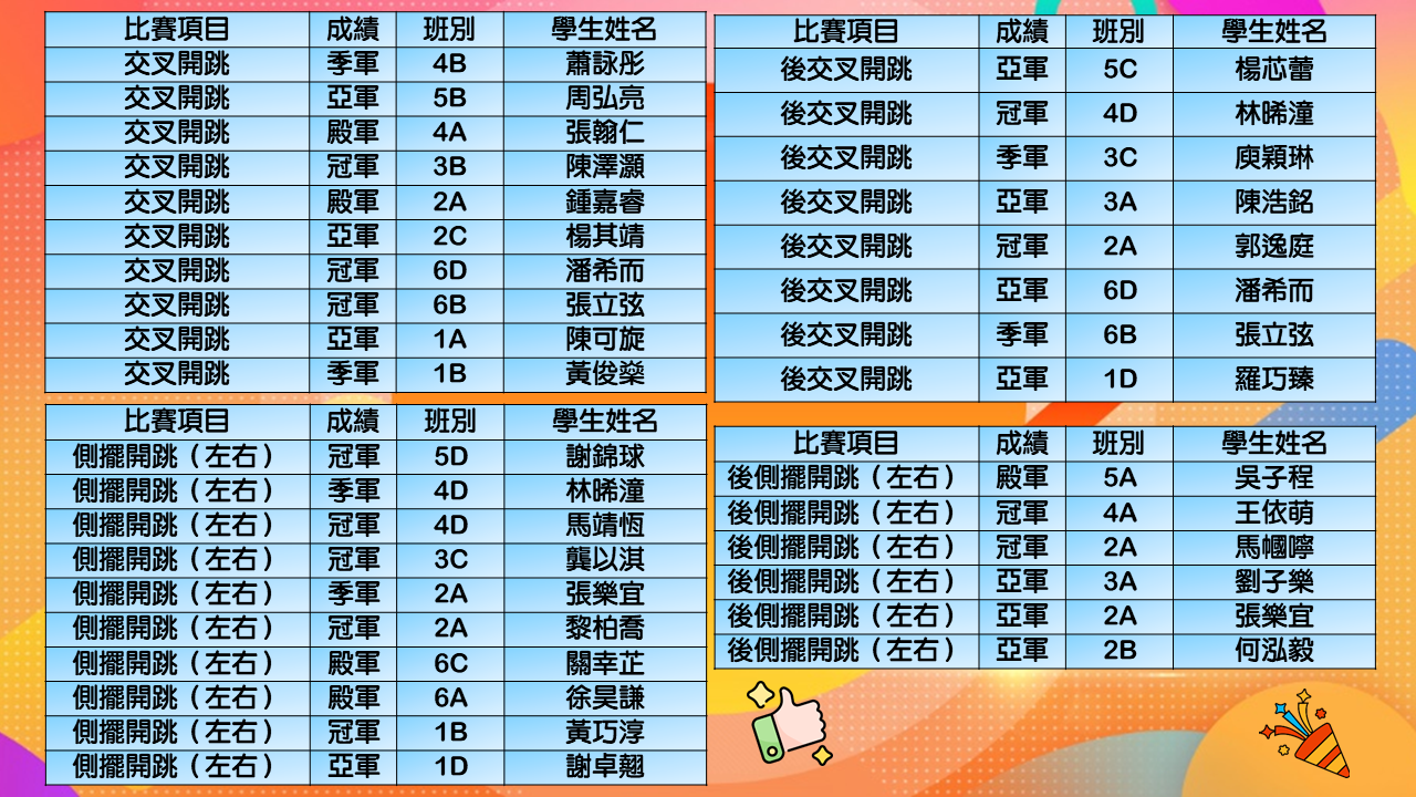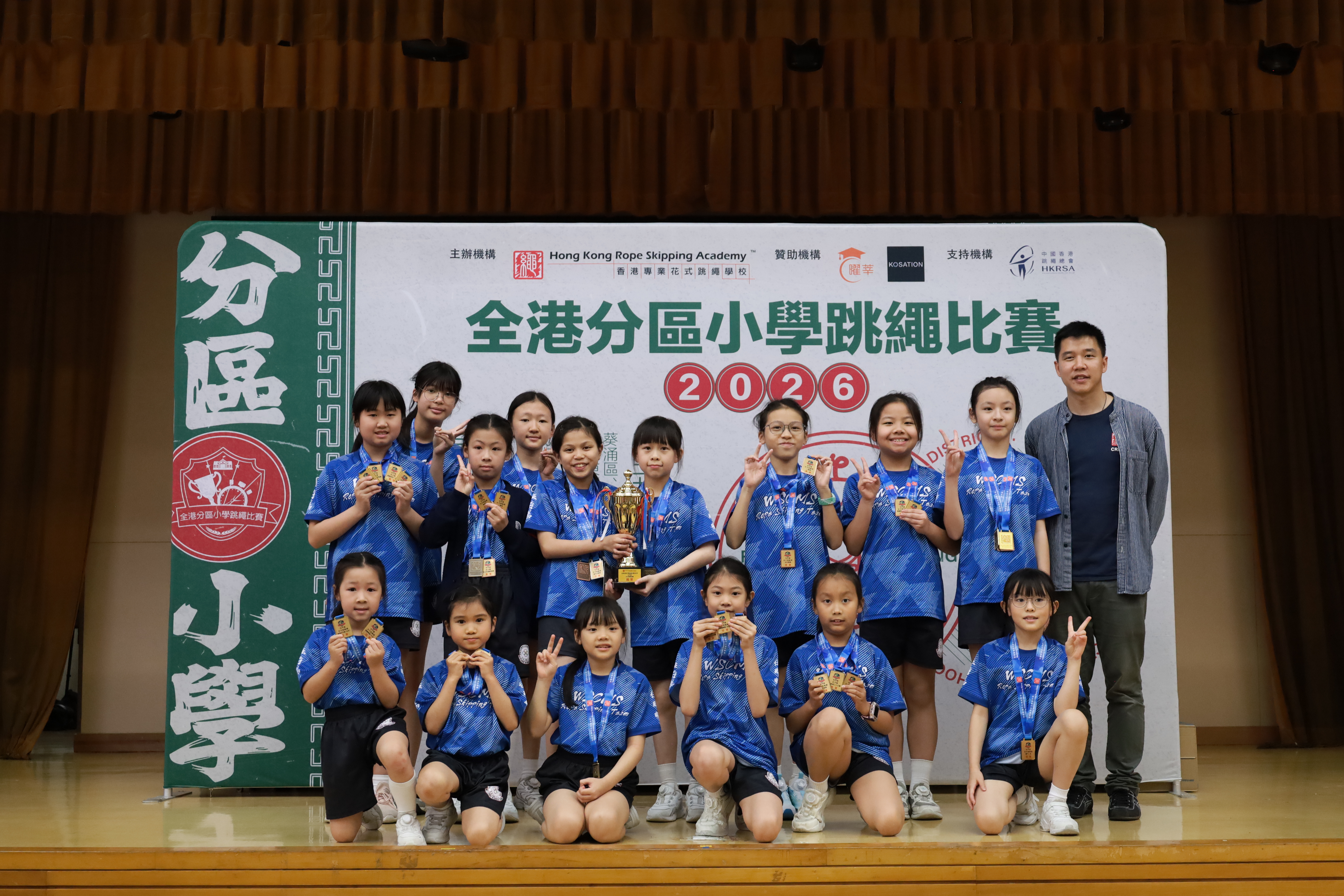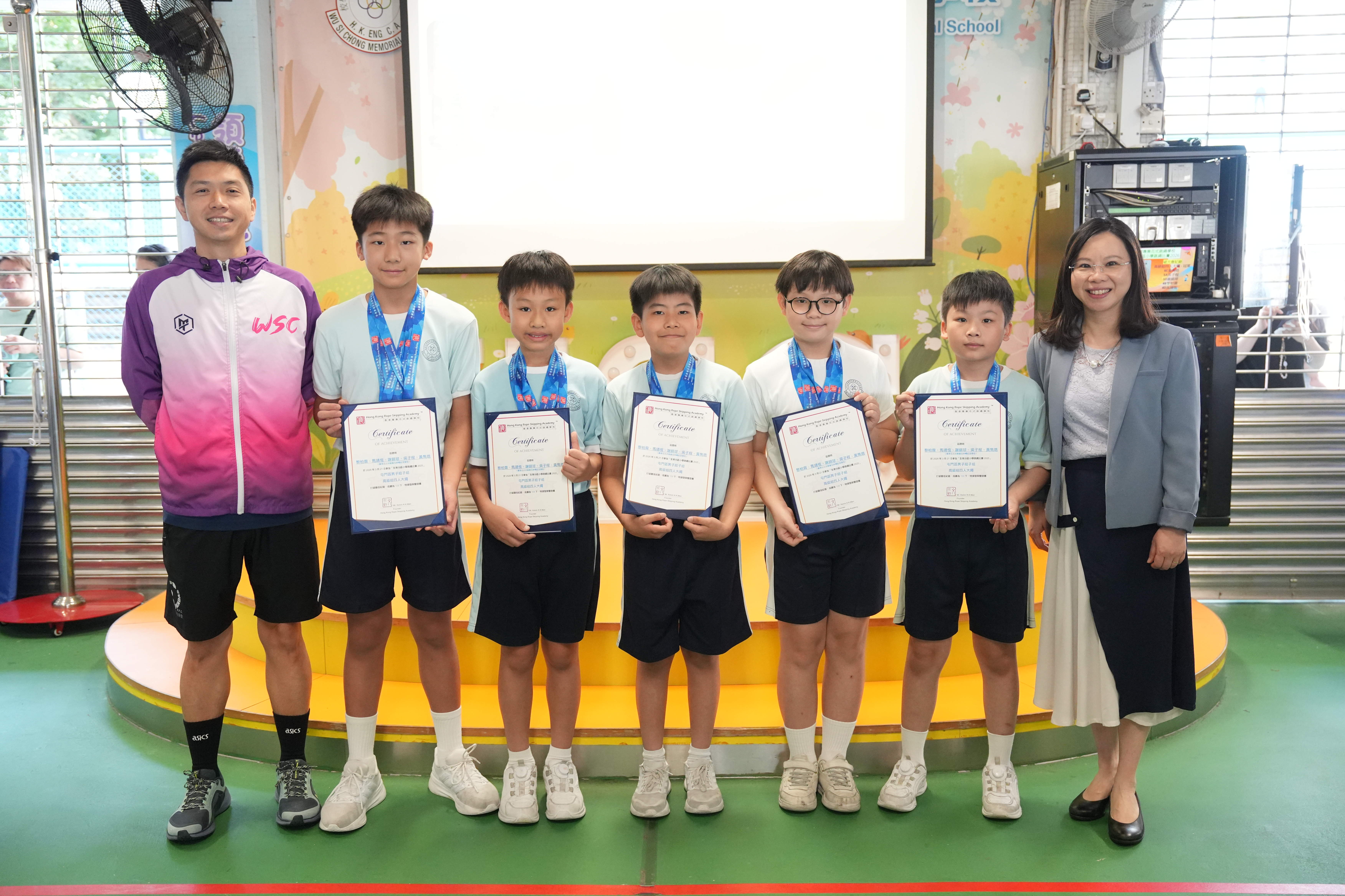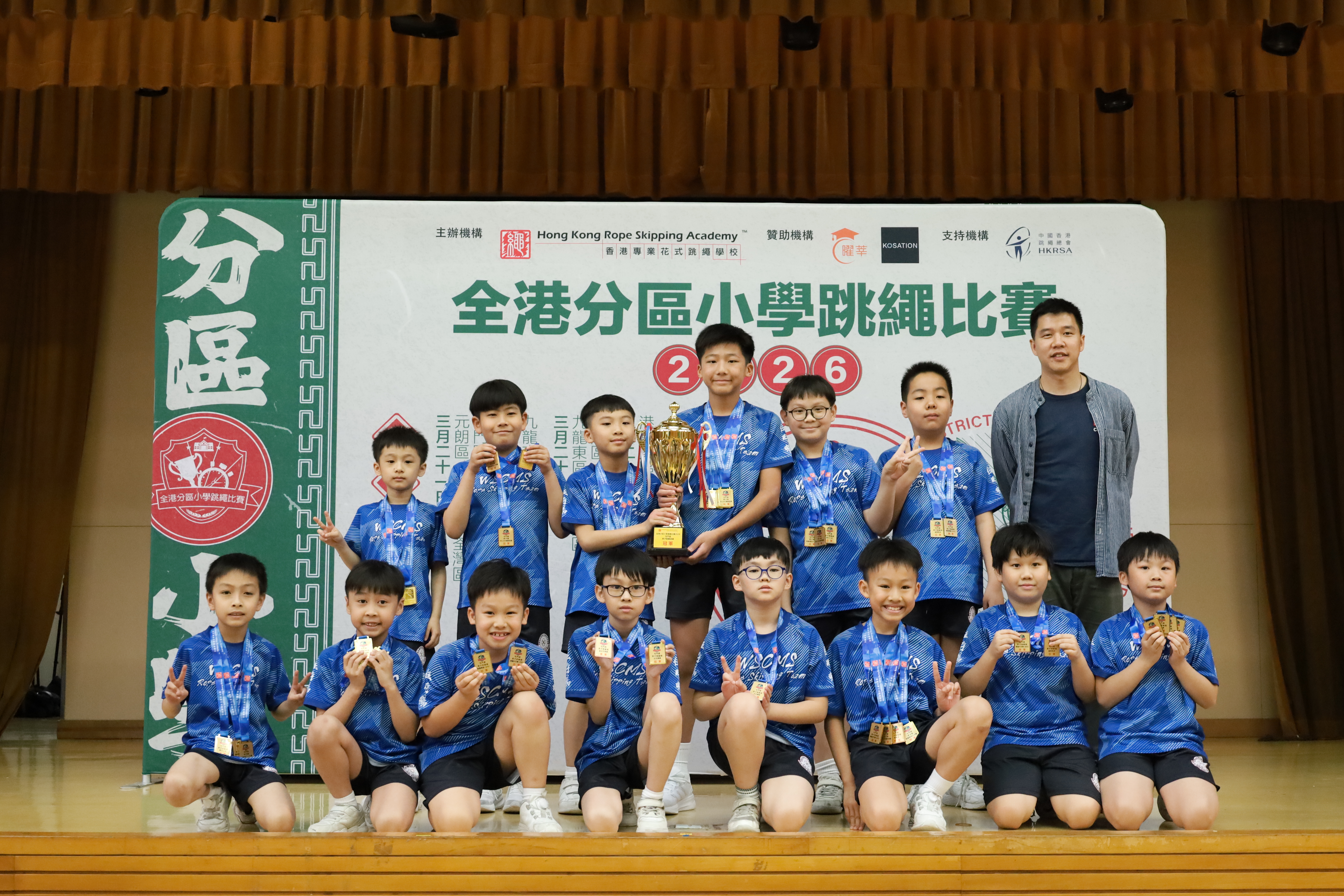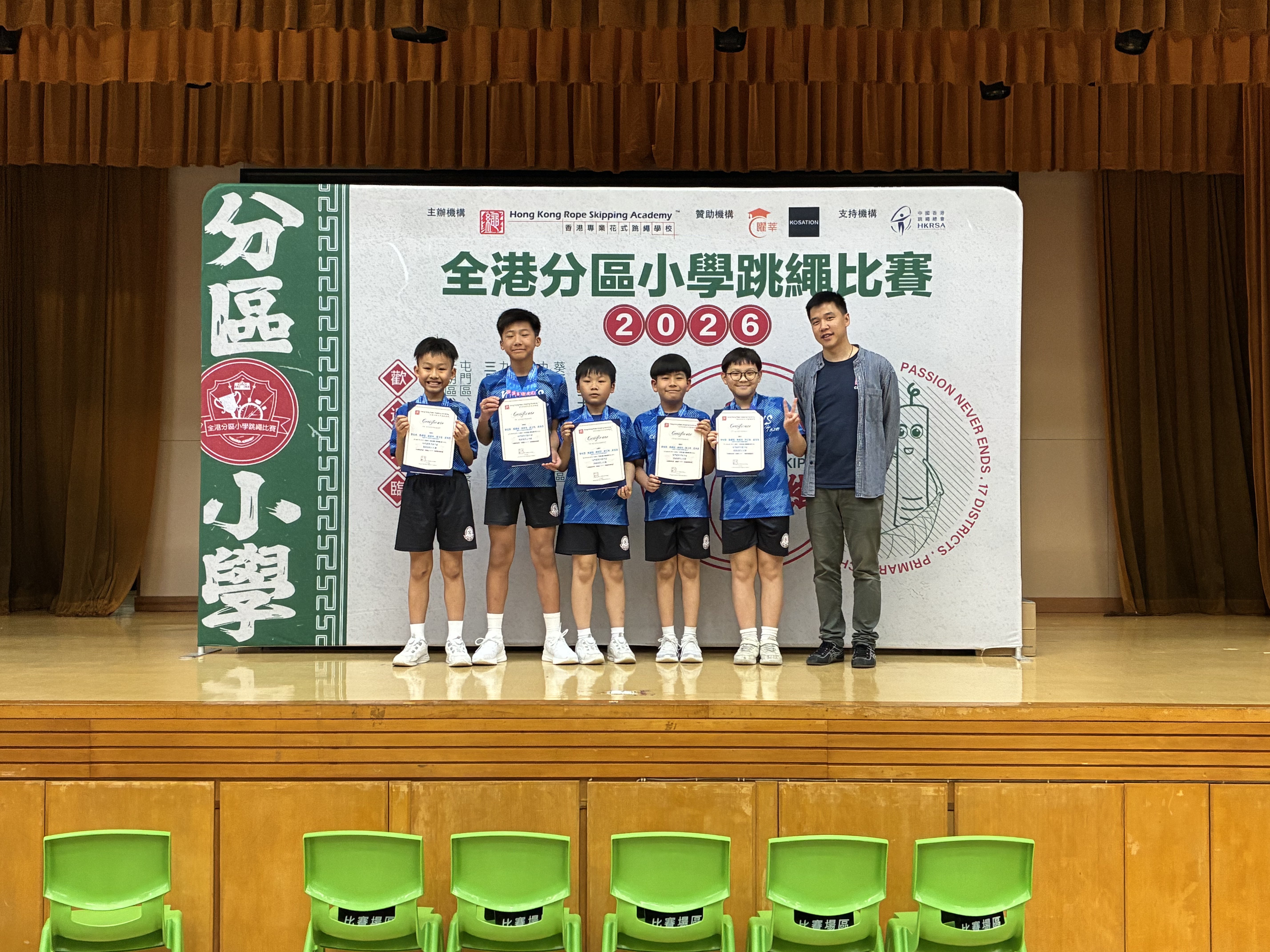 在同學努力作賽下,伍時暢跳繩隊最終獲得屯門區團體女子組殿軍及團體男子組冠軍殊榮。再次恭喜各位獲獎同學,亦感謝家長的支持及教練的教導。