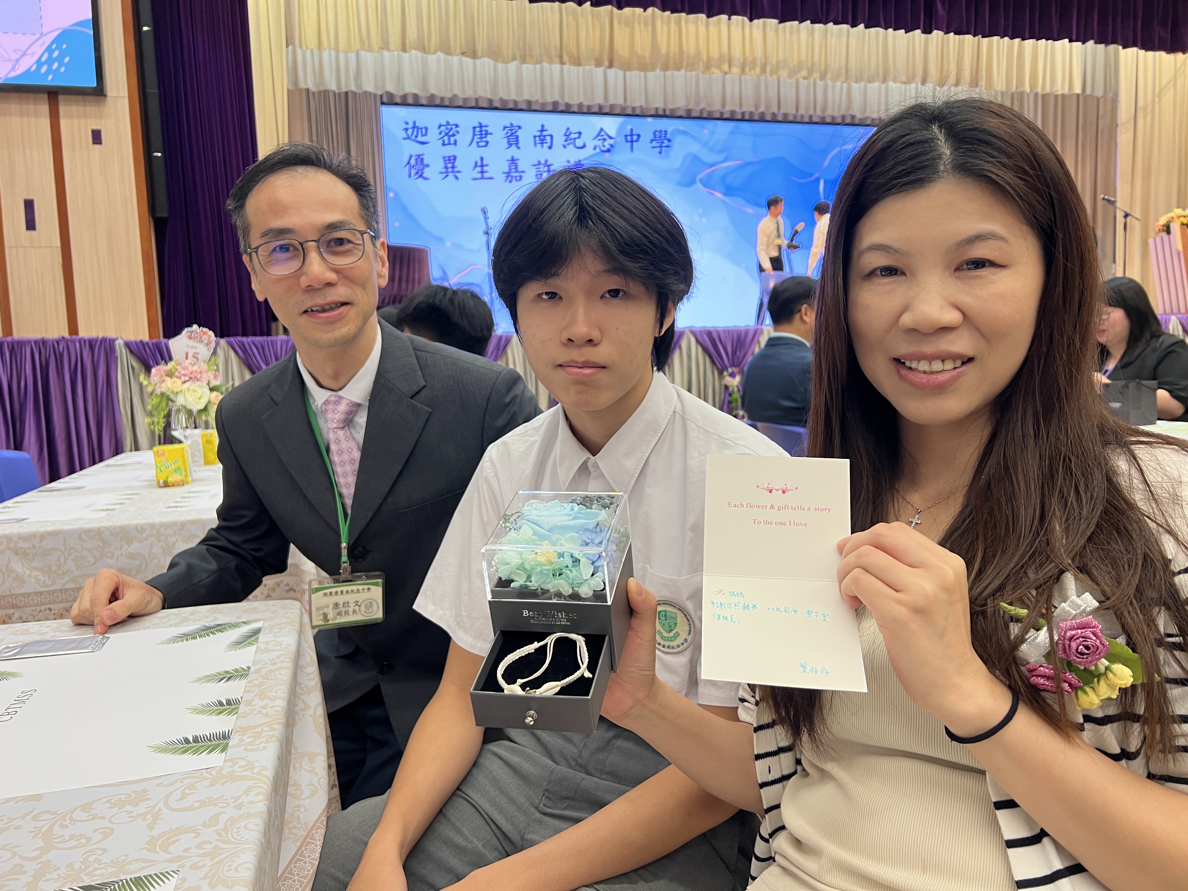 近日,關校長及兩位同學的家長獲邀出席該校舉行的**「優異生嘉許禮」**,一同分享他們努力成果與學習喜悅。 他們勤奮好學、持之以恆的精神,正正體現了伍時暢學生「克勤自勉」的特質,亦是學弟學妹的學習榜樣。