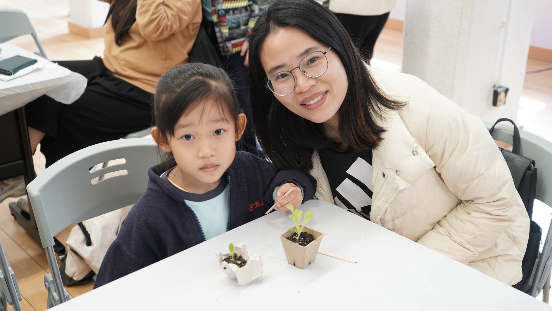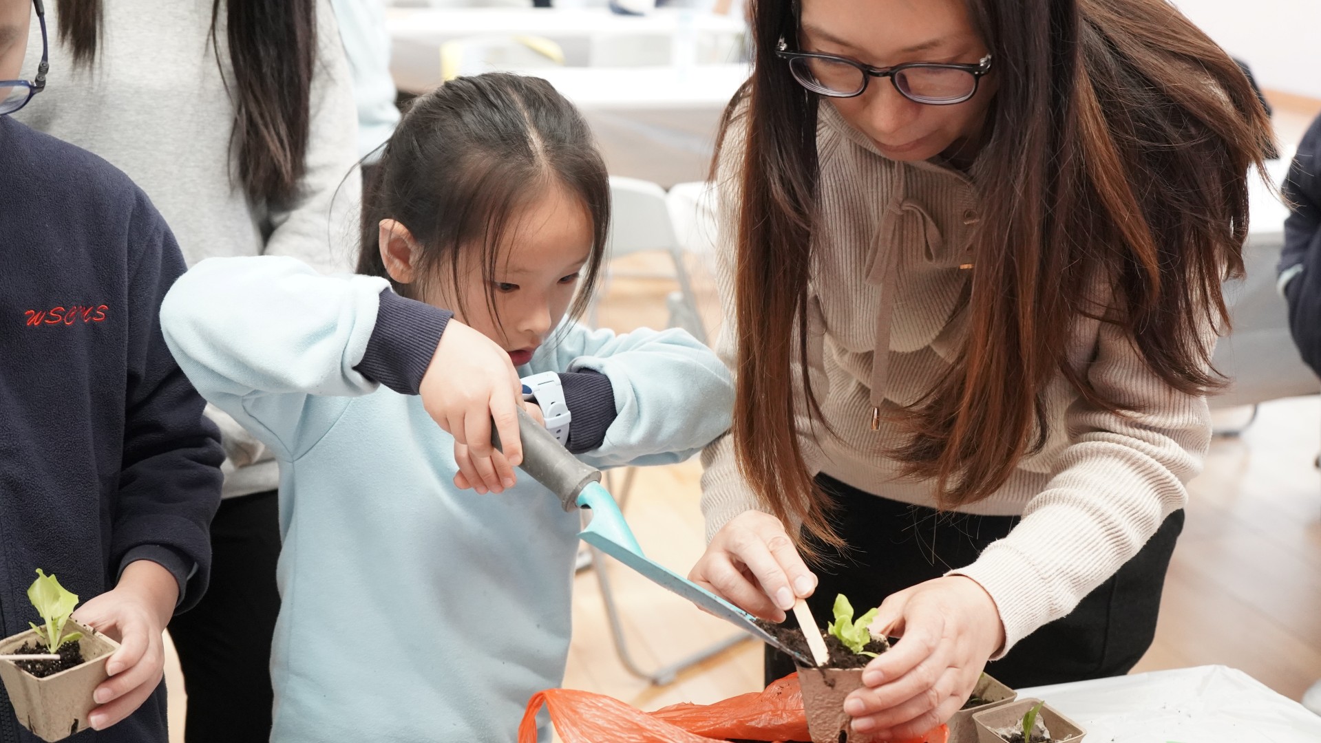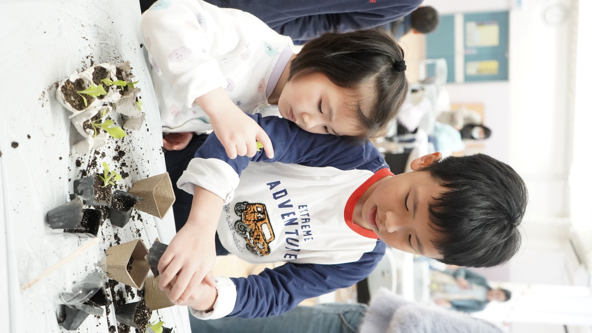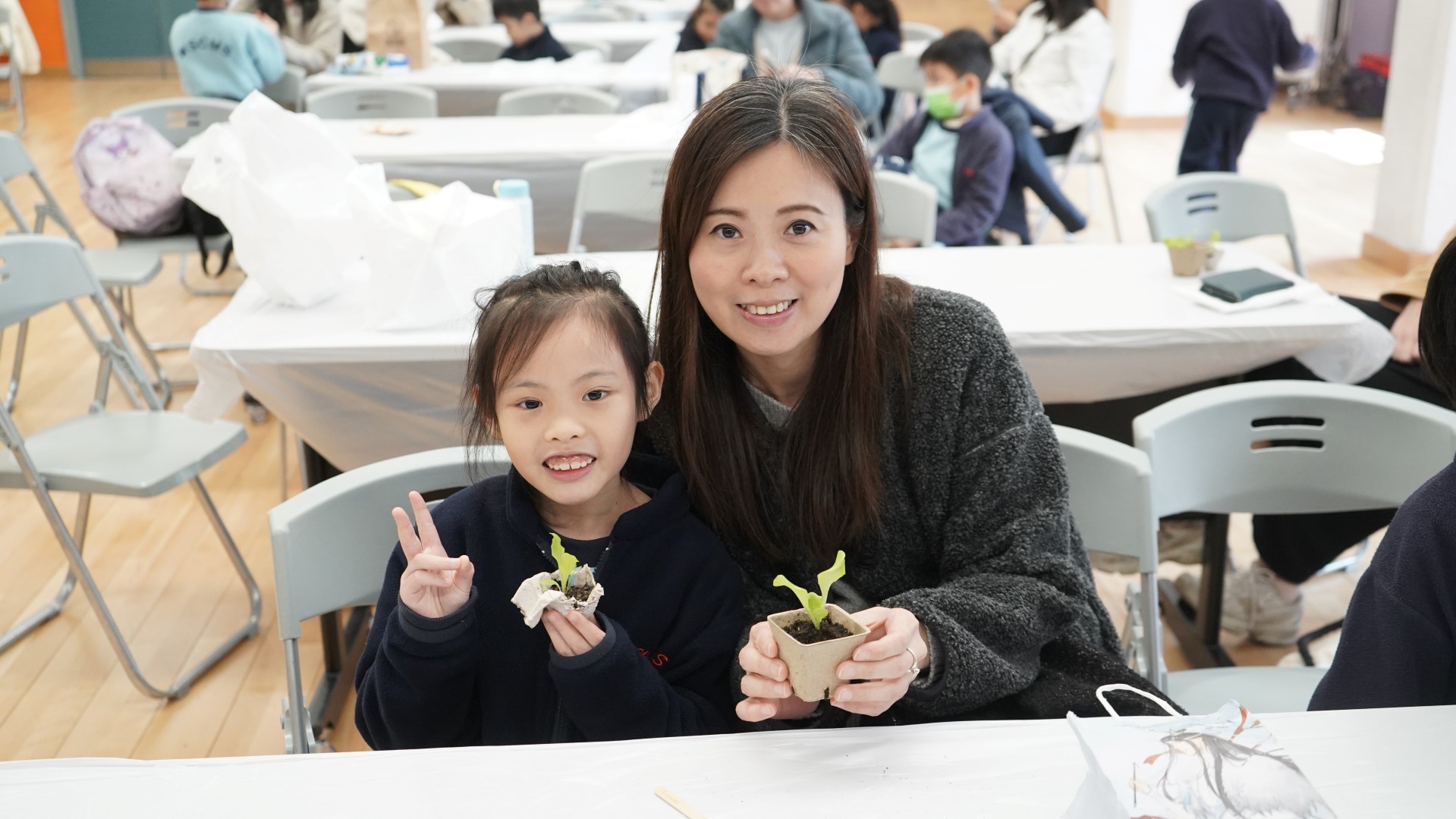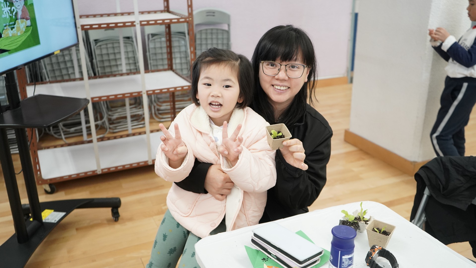 1 月份的閱讀主題—「勤勞」。配合此價值觀主題,圖書組邀請作家阿仨到校分享她們的繪本--《誰吃了我的粟米》,讓學生明白農夫勤勞的成果,以及農夫與大自然其他動物共融的生活。當天參加者還獲贈生菜苗,嘗試當一位勤勞的農夫。