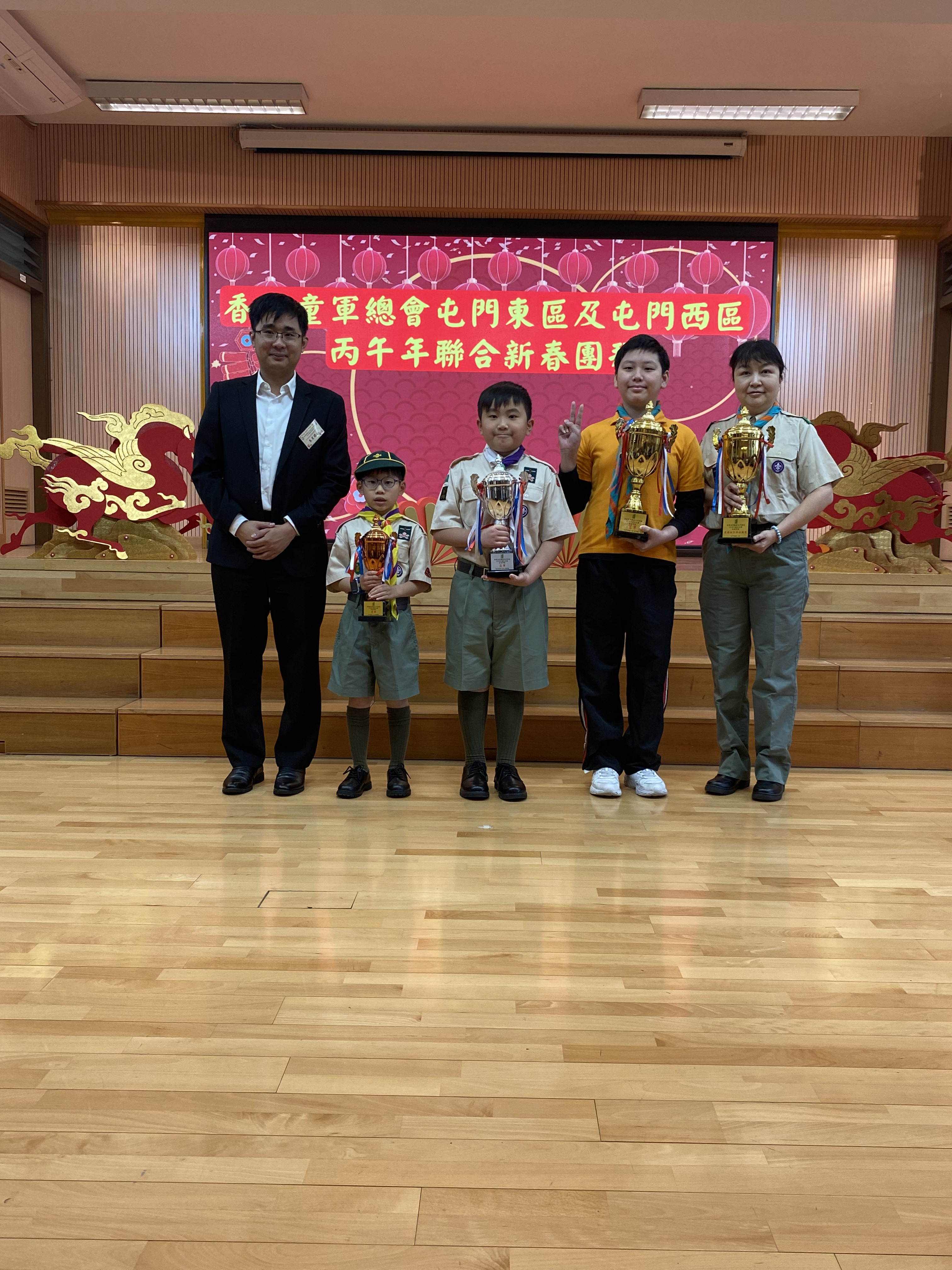 4C郭譯謙在「屯門西區35周年填色及紀念章設計比賽」中獲得填色比賽幼童軍組亞軍,獎項已於「屯門東區及屯門西區丙午年聯合新春團拜」中頒發,本校旅長關倩芬校長亦有到場參與頒獎儀式。恭喜郭同學在比賽中獲獎,並與各位家長和同學分享郭譯謙的獲獎作品。