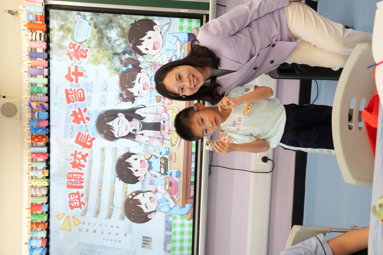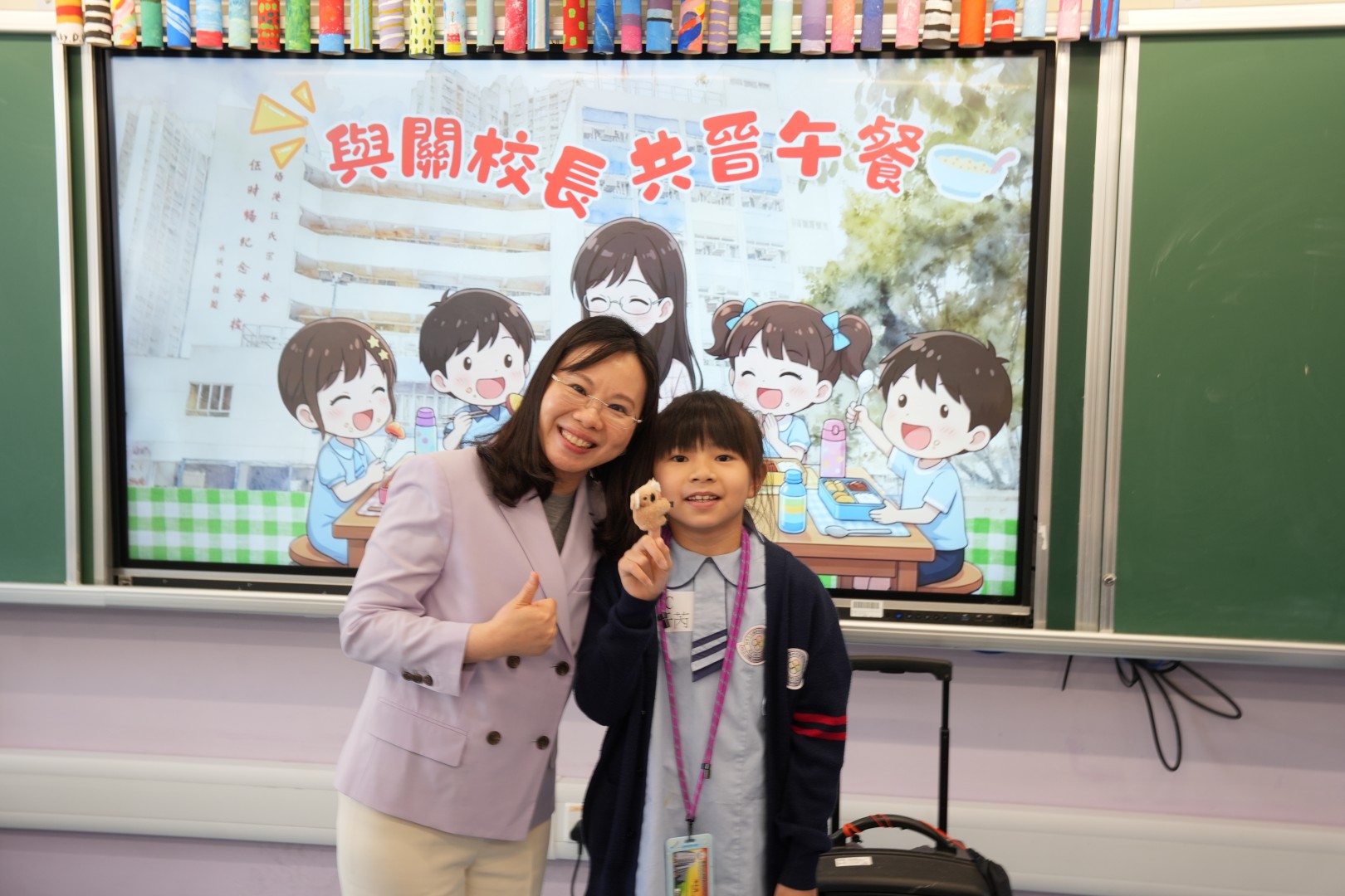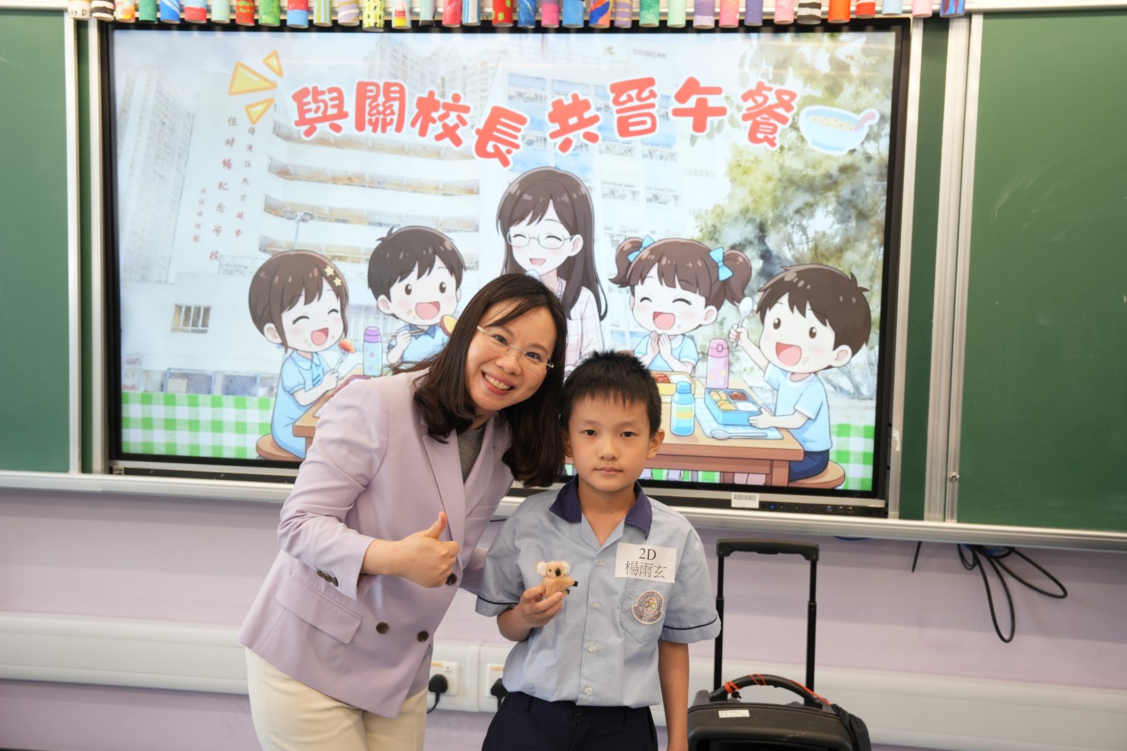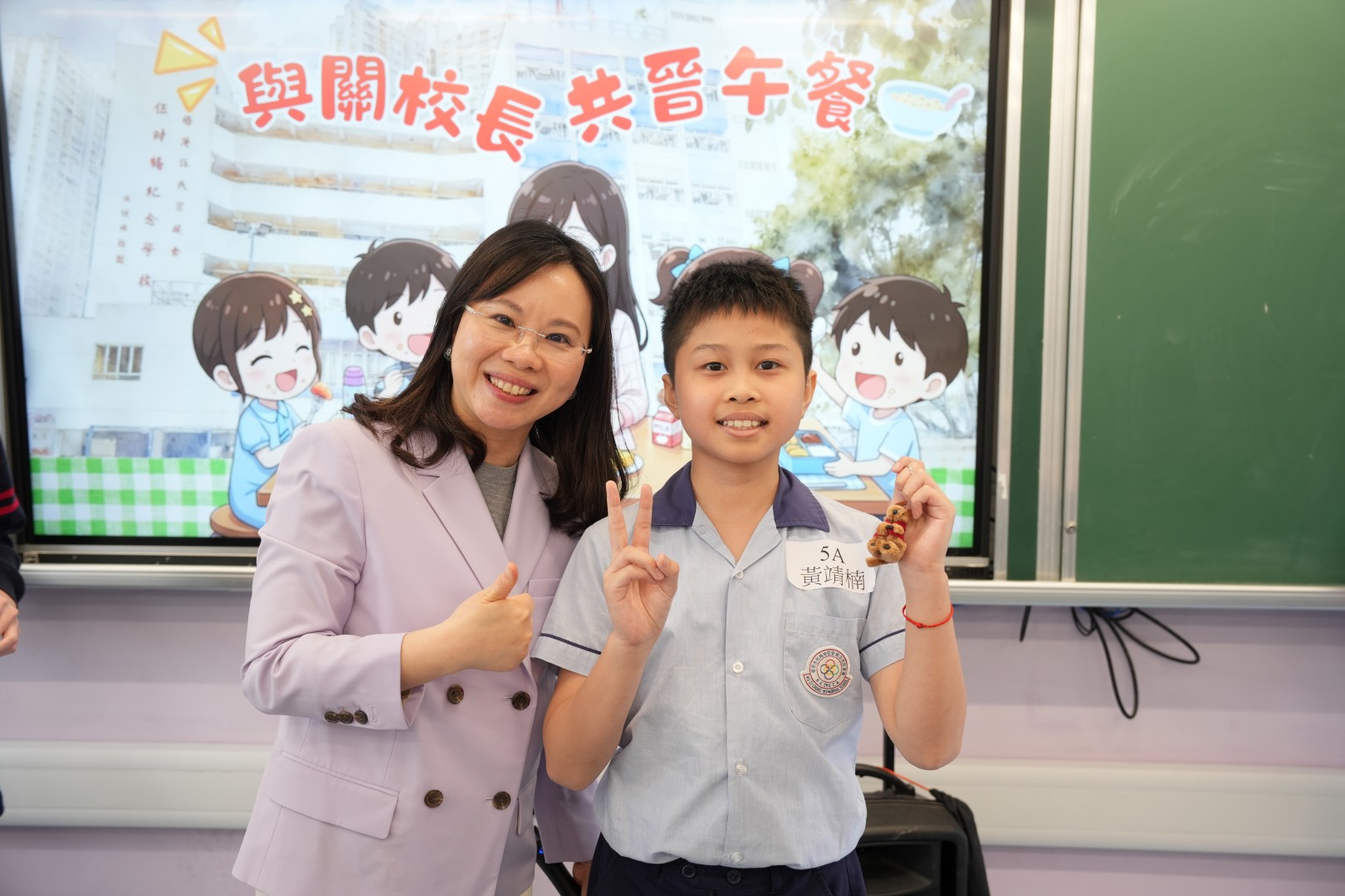 為了表揚同學於第二段考中有顯著進步的同學,關校長特邀同學一起共晉午餐,並送上禮物以表奬勵。