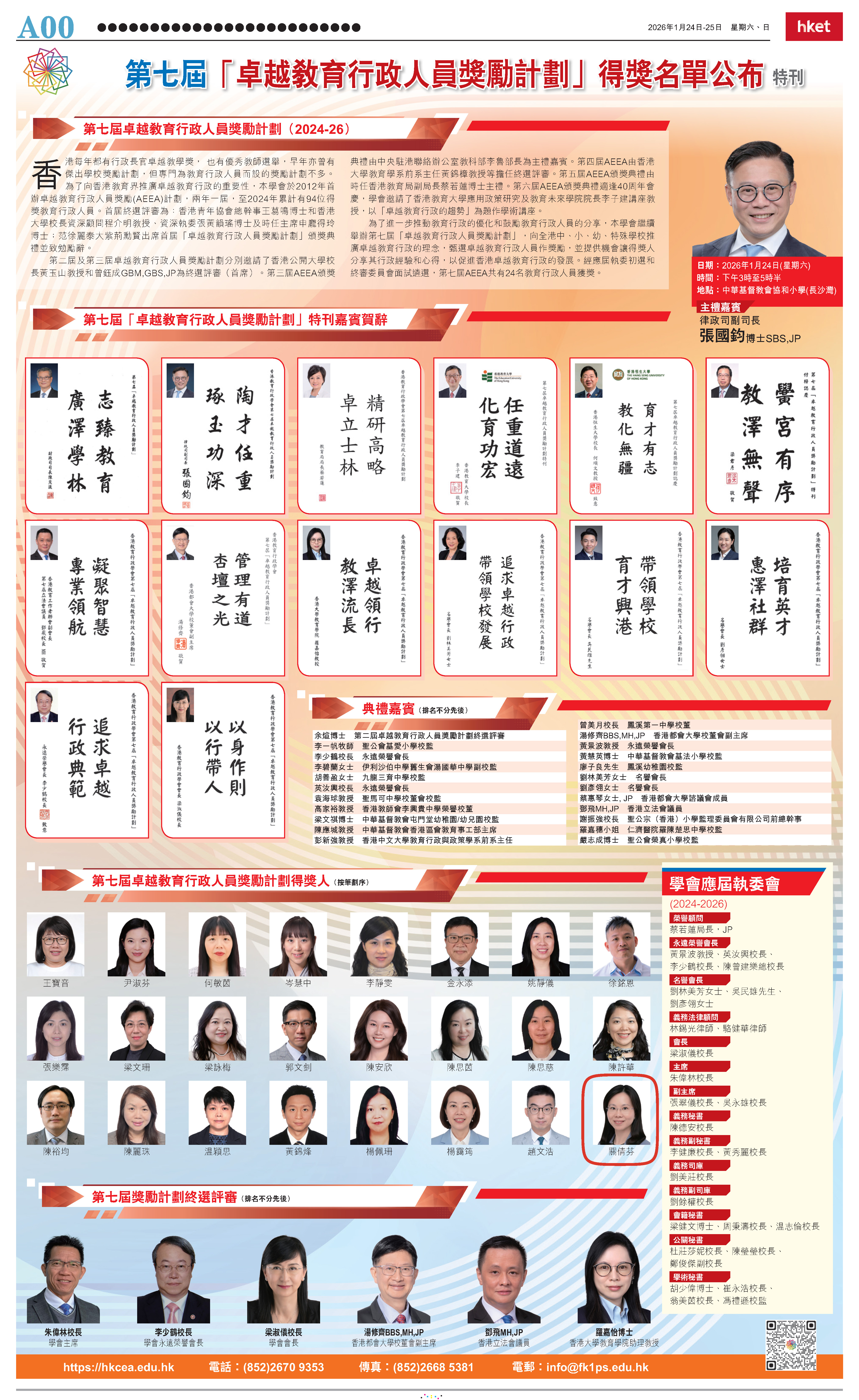 | 2026/01 | 香港經濟日報 | 第七屆 「卓越教育行政人員獎勵計劃」 得獎名單公布 |