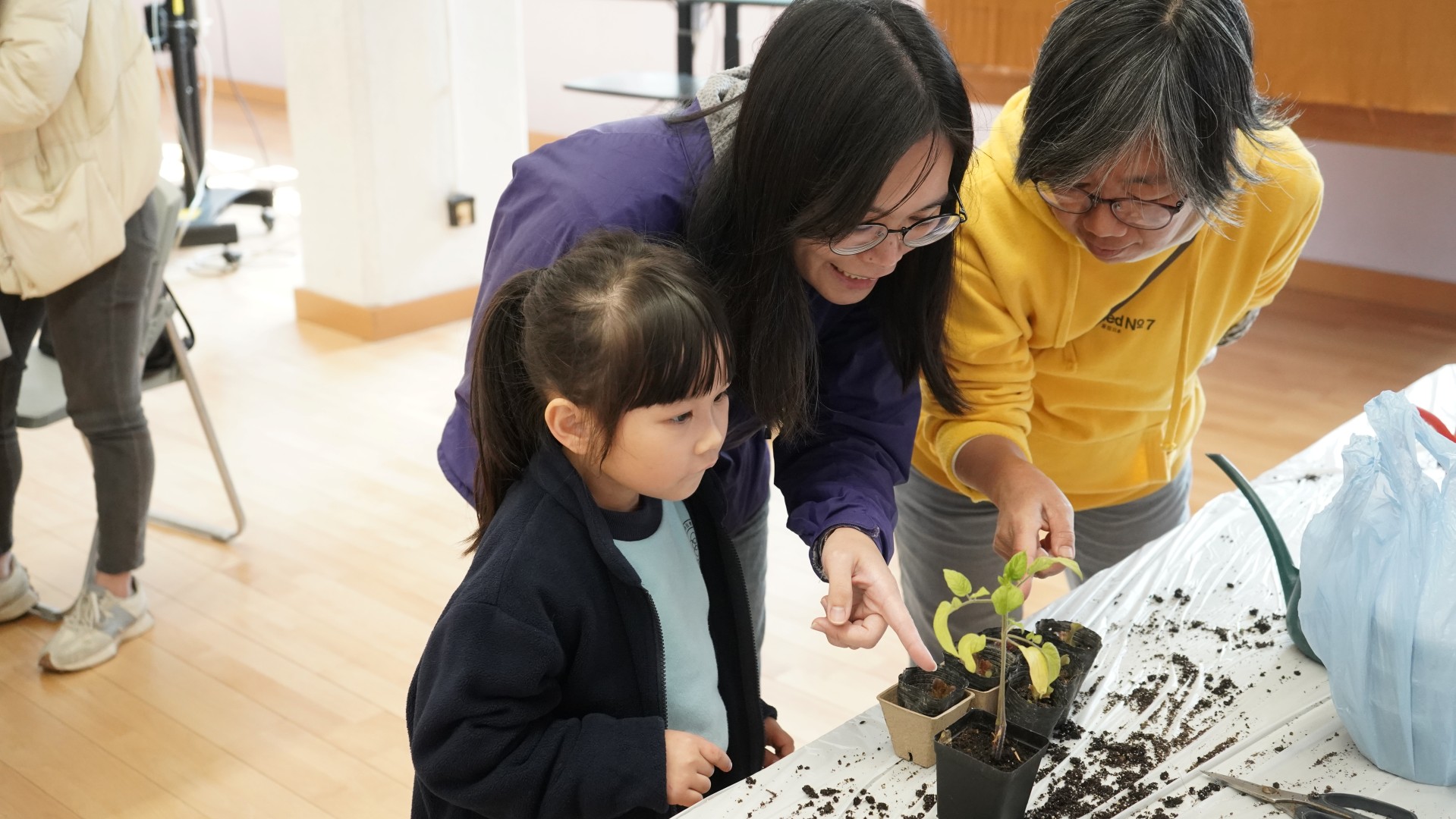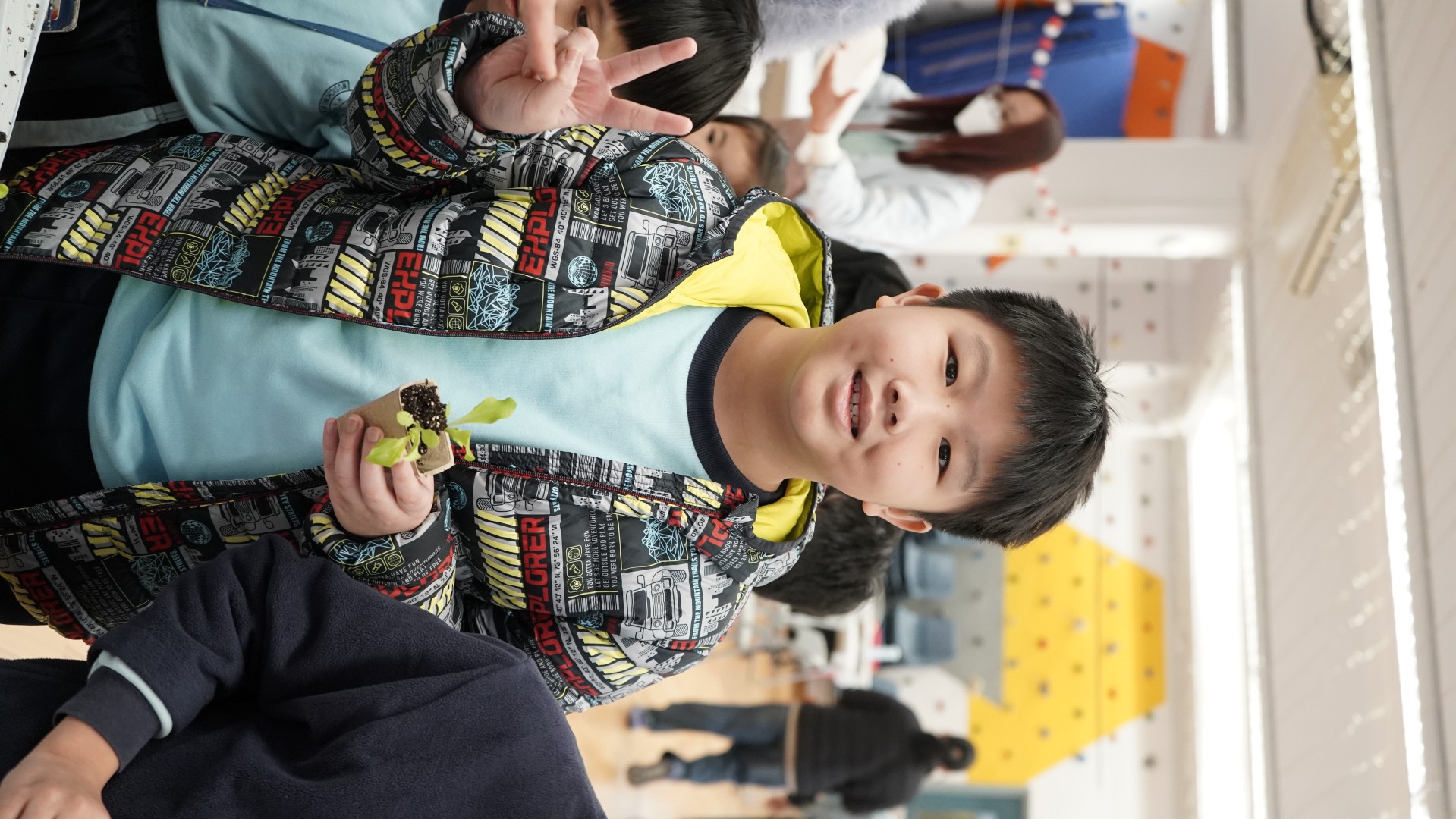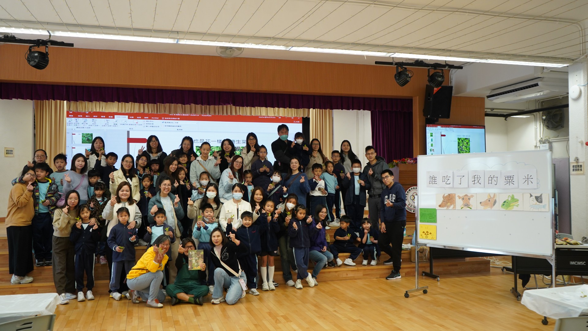 1 月份的閱讀主題—「勤勞」。配合此價值觀主題,圖書組邀請作家阿仨到校分享她們的繪本--《誰吃了我的粟米》,讓學生明白農夫勤勞的成果,以及農夫與大自然其他動物共融的生活。當天參加者還獲贈生菜苗,嘗試當一位勤勞的農夫。