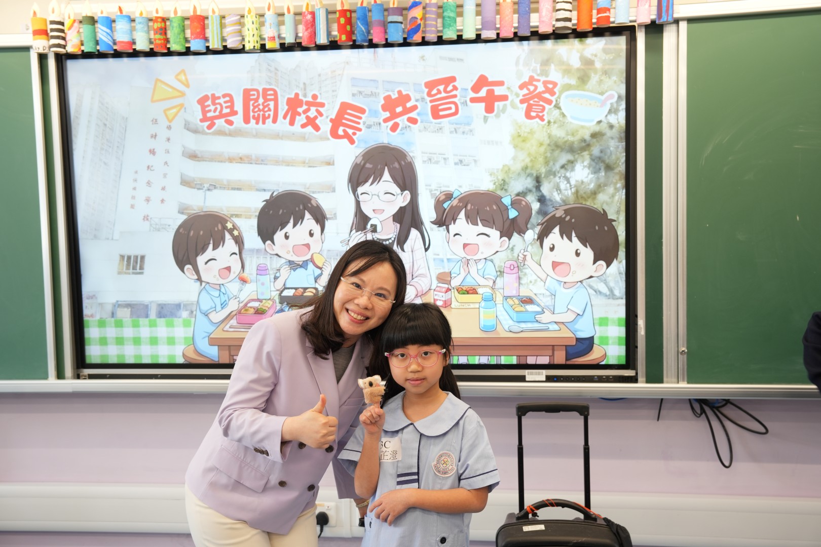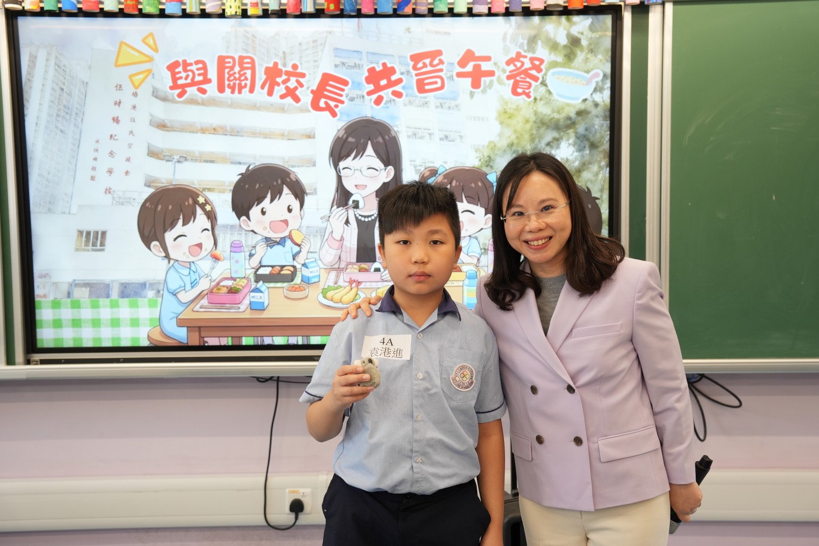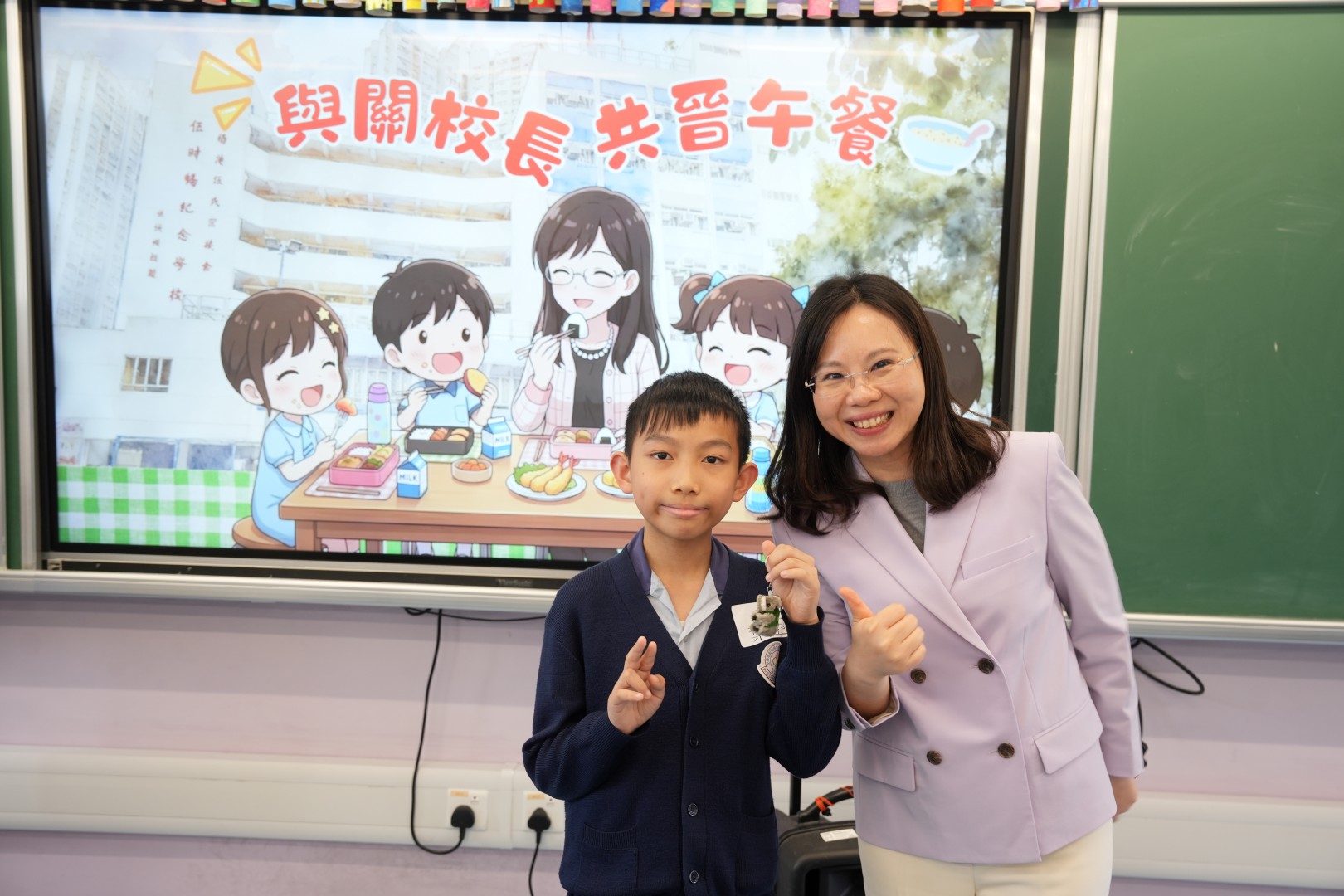 為了表揚同學於第二段考中有顯著進步的同學,關校長特邀同學一起共晉午餐,並送上禮物以表奬勵。