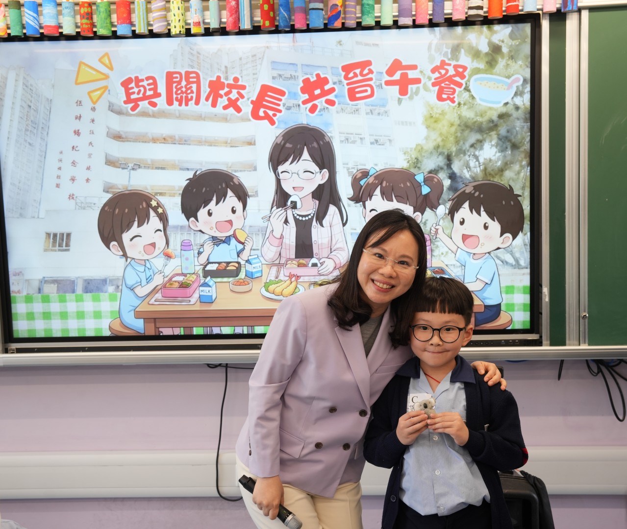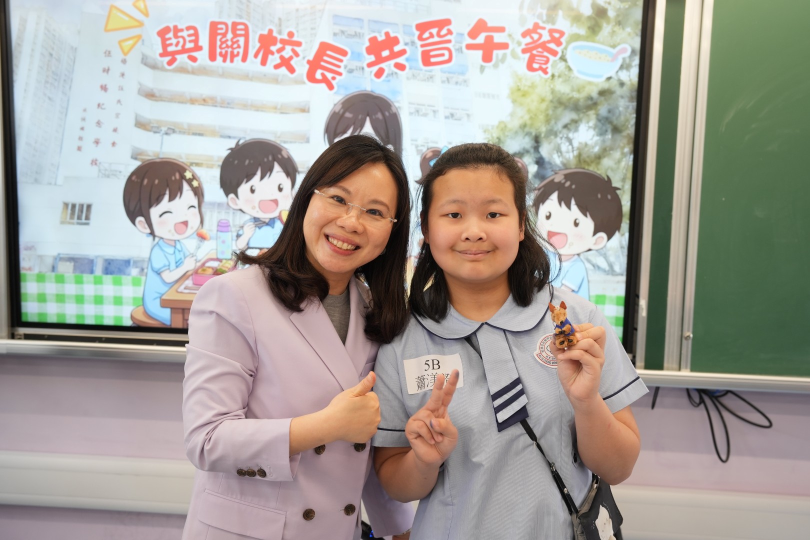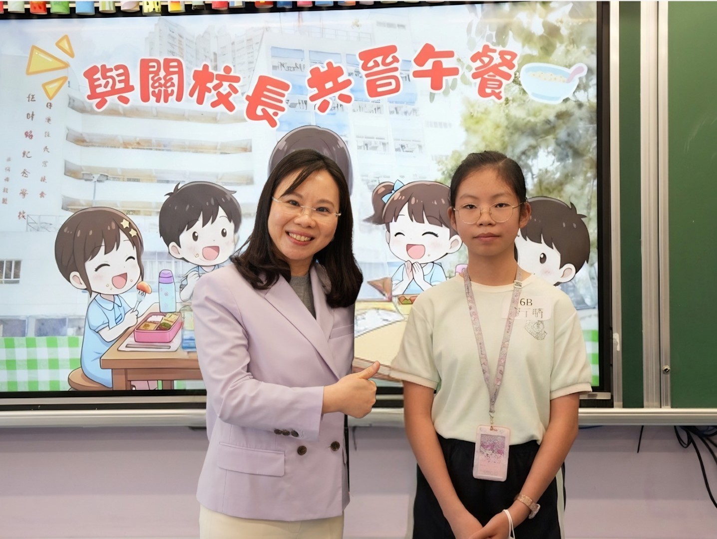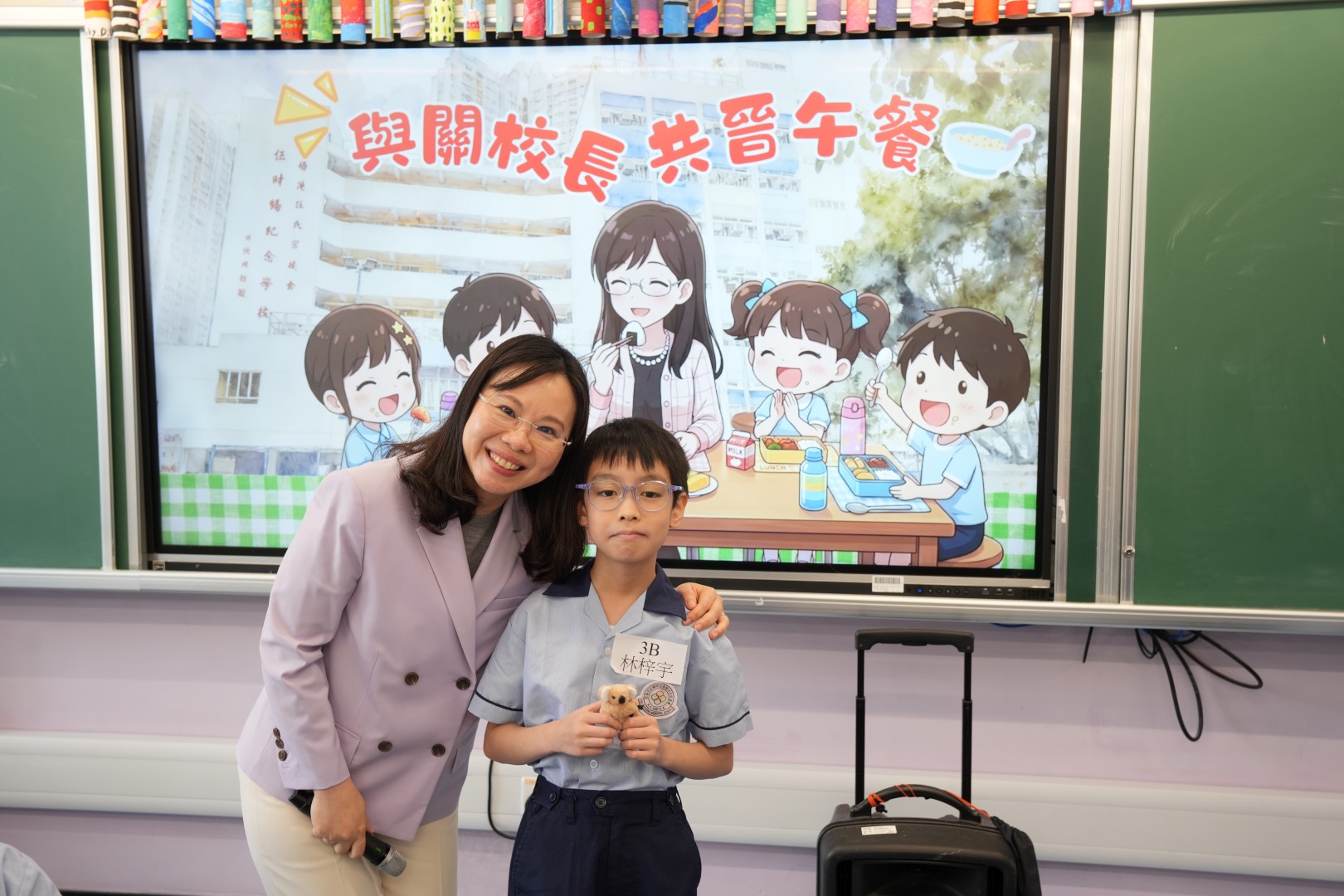 為了表揚同學於第二段考中有顯著進步的同學,關校長特邀同學一起共晉午餐,並送上禮物以表奬勵。